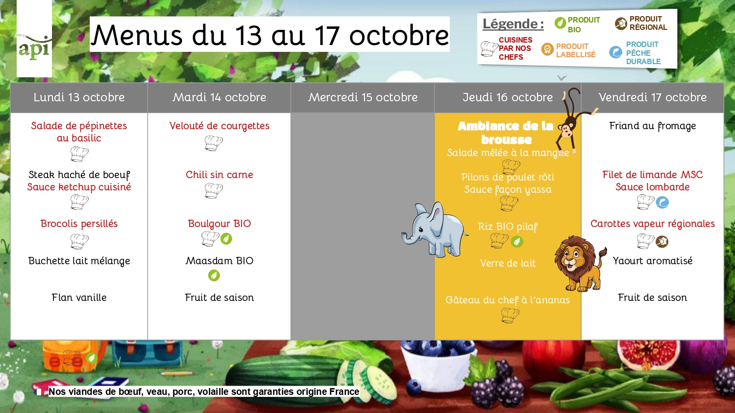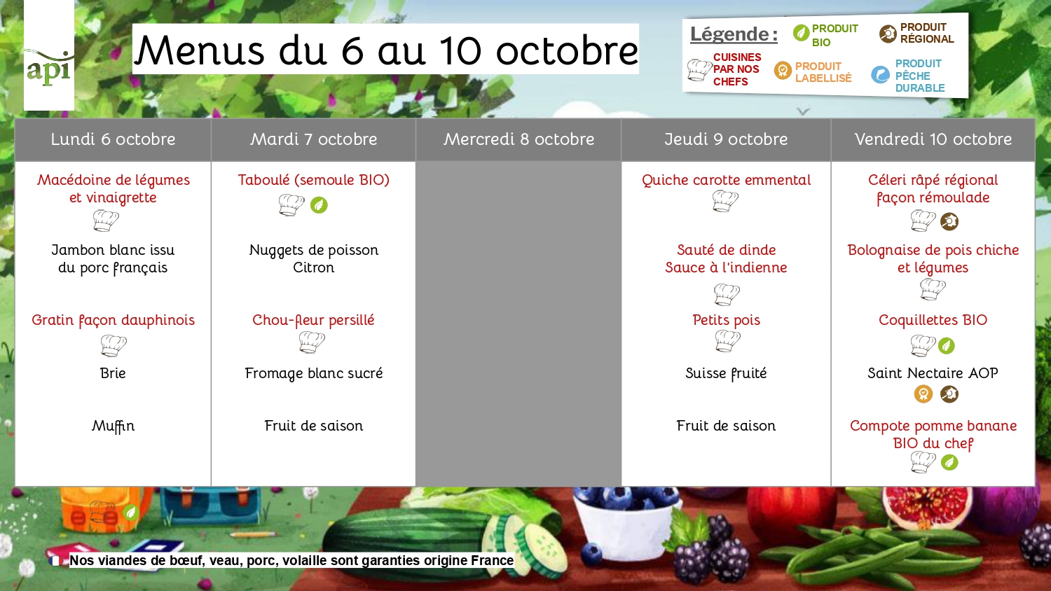 Menus de la cantine