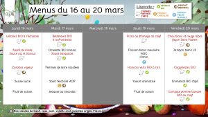 Menus du 16 au 20 mars 2026